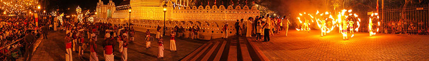 The Kandy Esala Perahera also known as The Festival of the Tooth is a grand festival celebrated with elegant costumes and is held in July and August in Kandy, Sri Lanka. This historical procession is held annually to pay homage to the Sacred Tooth Relic of Lord Buddha, which is housed at the Sri Dalada Maligawa in Kandy. A unique symbol of Sri Lanka, the procession consists of many traditional local dances such as fire-dances, whip-dances, Kandyan dances and various other cultural dances, in addition to the elephants who are usually adorned with lavish garments.